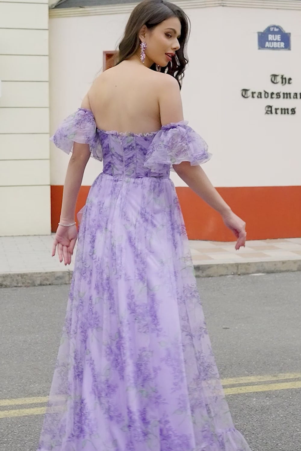 Laveender Printed A line Prom Dress with Removable Sleeves