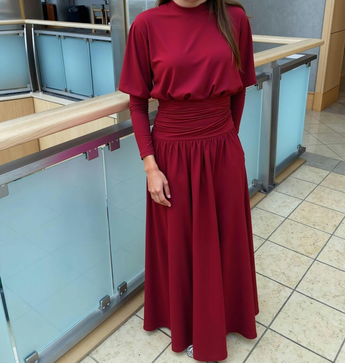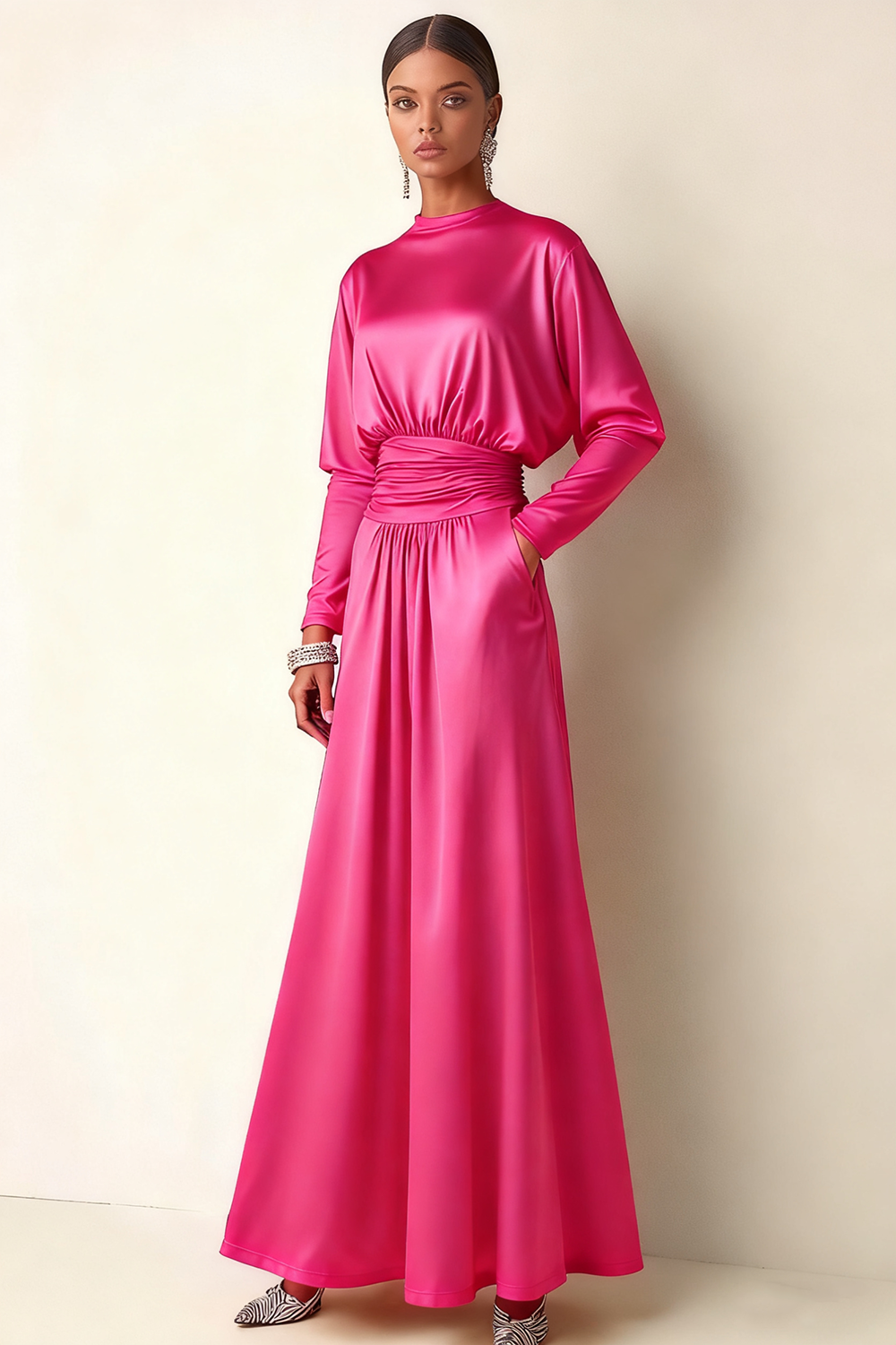 This dress combines timeless elegance with practical comfort, making it a refined choice for evening events and special occasions. The long length elevates the formal appeal, offering an elongated and elegant look perfect for galas, dinners, and celebrations. Functional side pockets bring a modern, convenient twist, allowing you to carry small essentials without disrupting the streamlined design.