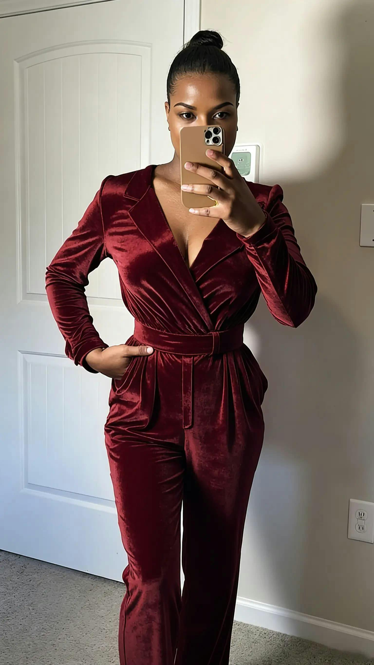 This jumpsuit is a striking choice for women who want to stand out with modern elegance and confidence. The peak lapel detail lends a touch of tailored refinement, while the fitted bodice and defined waist create a sleek, feminine silhouette. The straight-leg cut elongates the figure, offering a chic and contemporary vibe that moves effortlessly with every step. Crafted for comfort and glamour, this jumpsuit allows freedom of movement while ensuring you look poised and radiant.