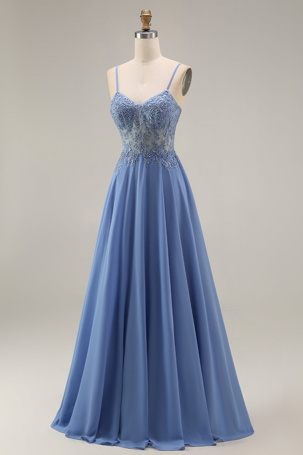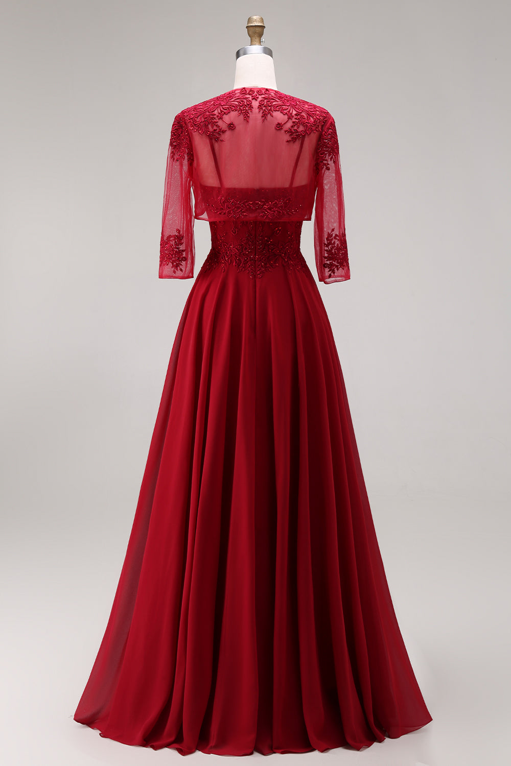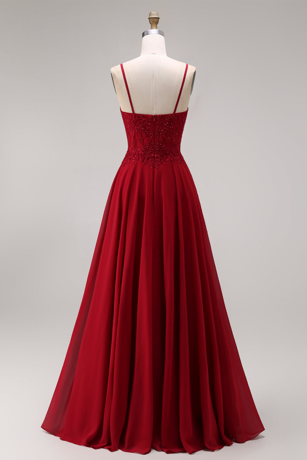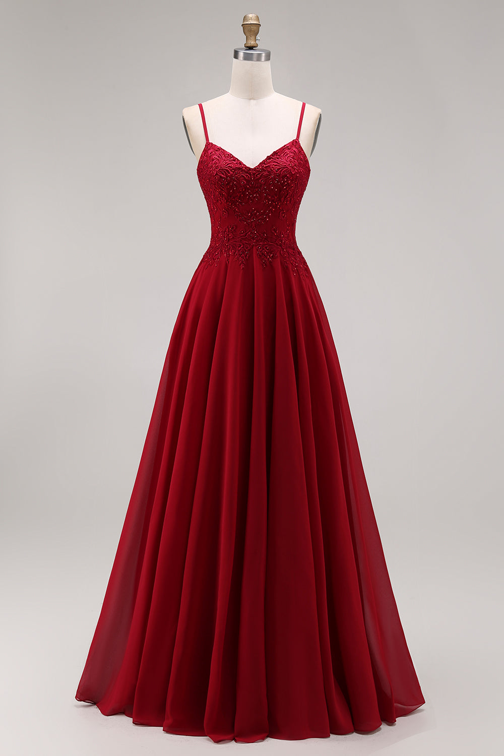 Burgundy Beaded Spaghetti Straps A Line Long Prom Dress