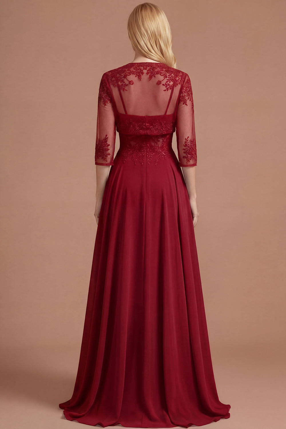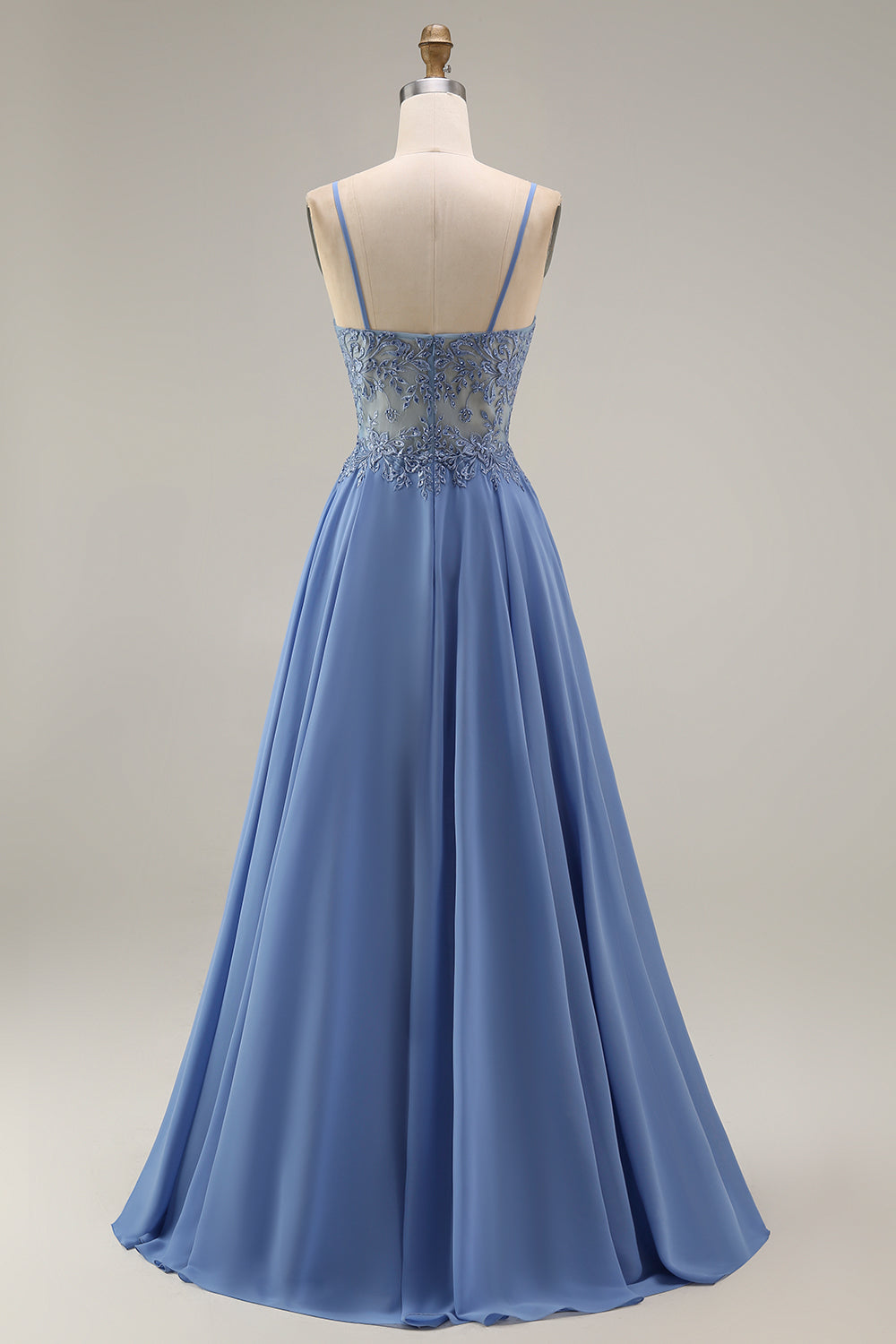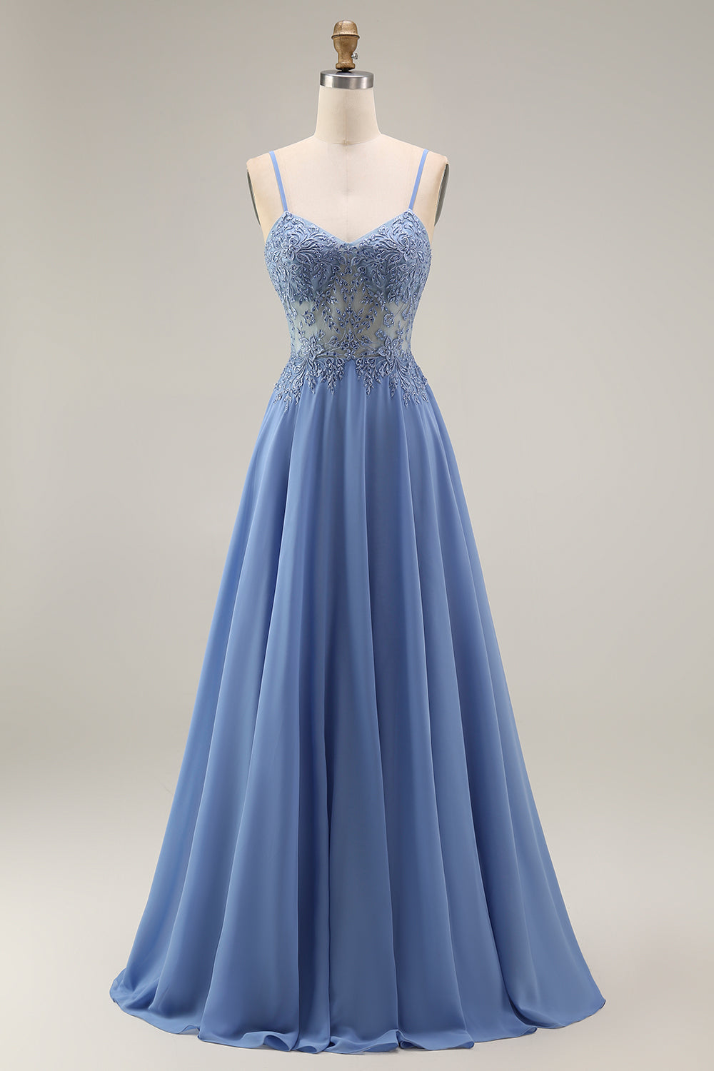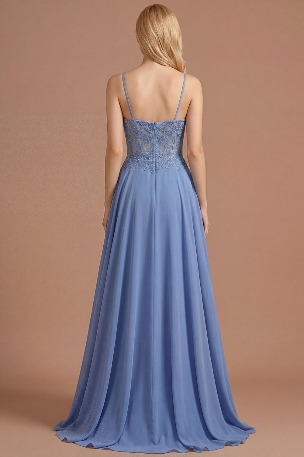 Burgundy Beaded Spaghetti Straps A Line Long Prom Dress