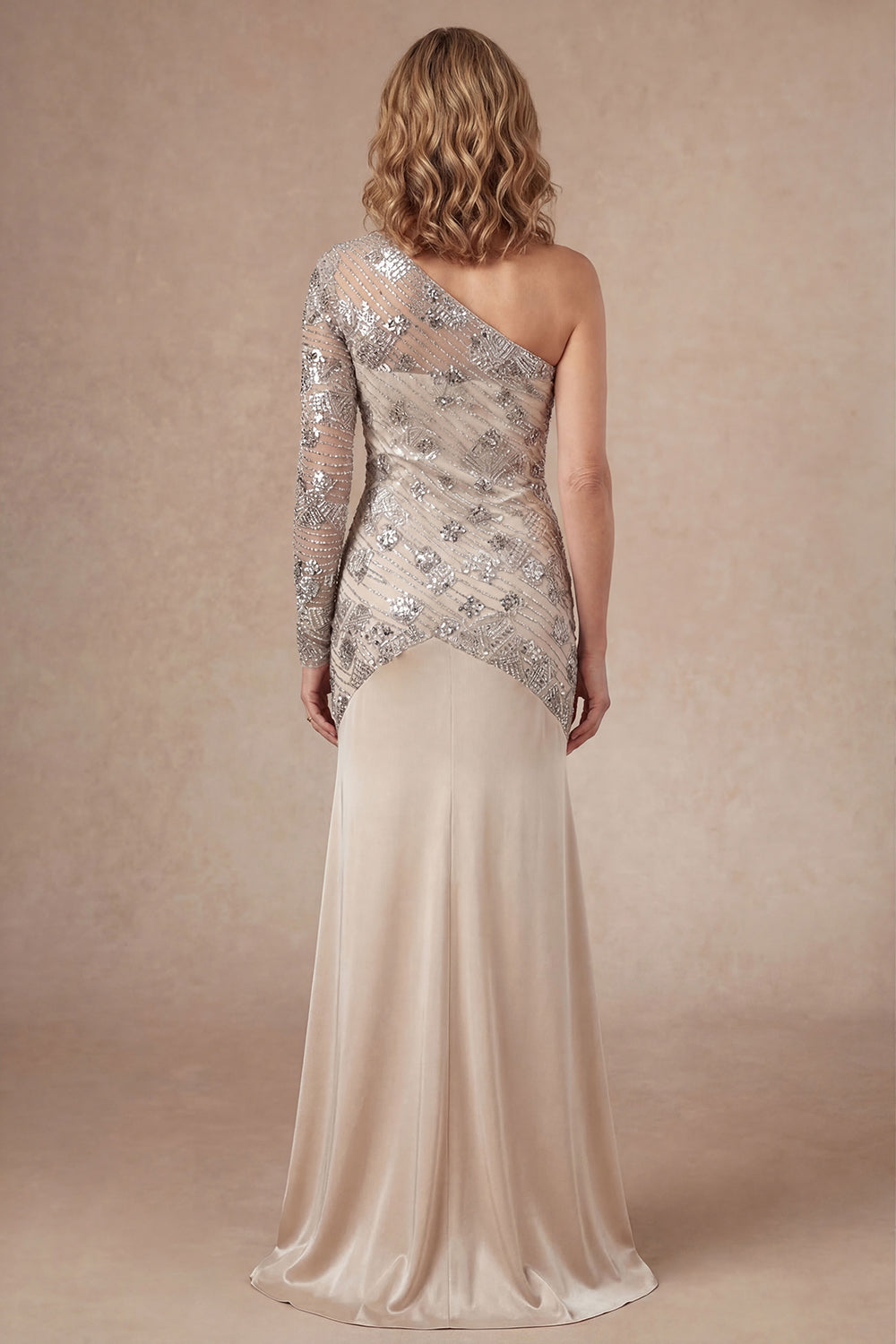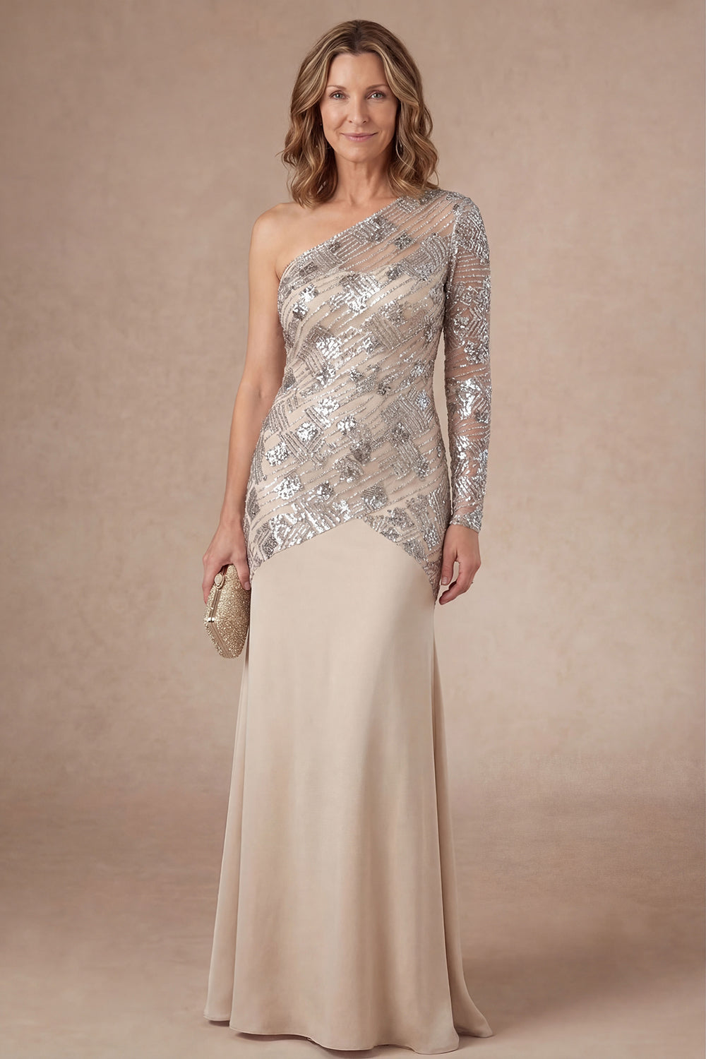 One Shoulder Apricot Sparkly Sheath Long Mother of the Bride Dress