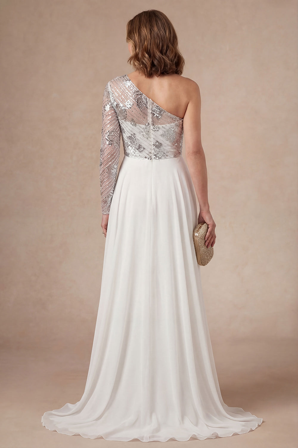 White One Shoulder Appliqued Ruffled A Line Long Mother of the Bride Dress
