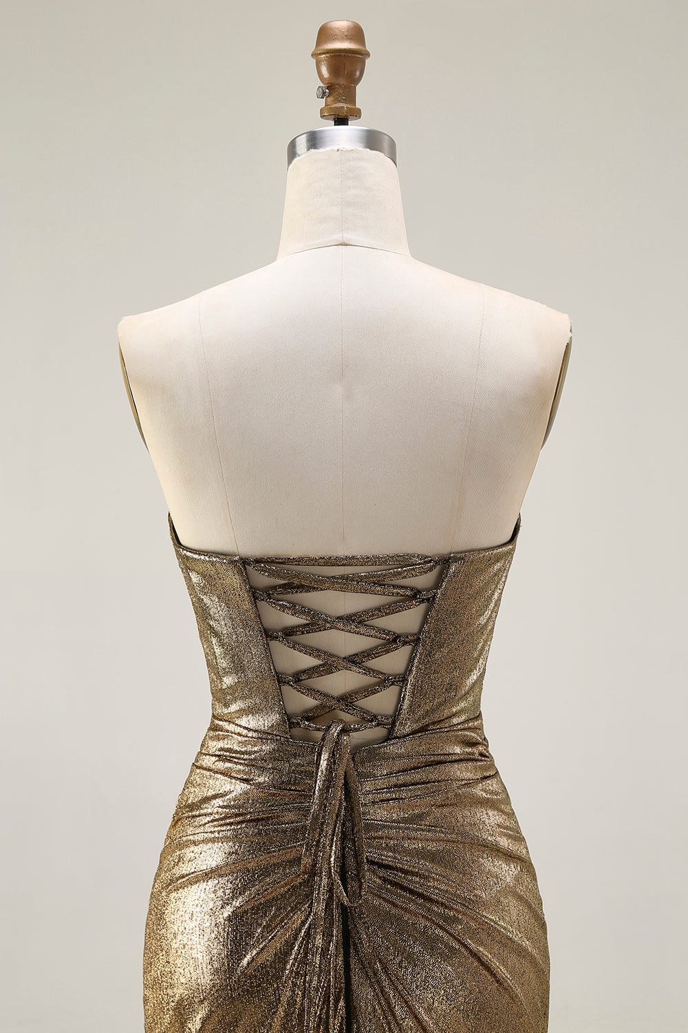 Sparkly Dark Golden Mermaid Strapless Maxi Prom Dress with Keyhole