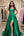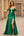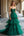 A Line Dark Green Deep V Neck Ruffled Long Prom Dress with Slit