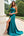 Peacock Green V-Neck A Line Backless Long Prom Dress with Slit