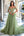 A Line Pleated V-Neck Dusty Sage Backless Prom Dress with Slit