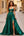 A Line Dark Green V Neck Backless Long Prom Dress with Slit