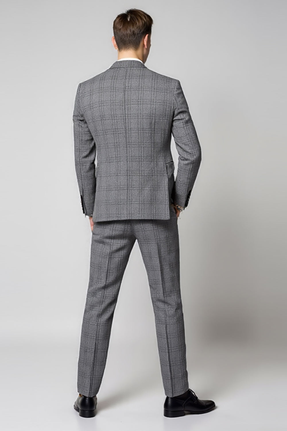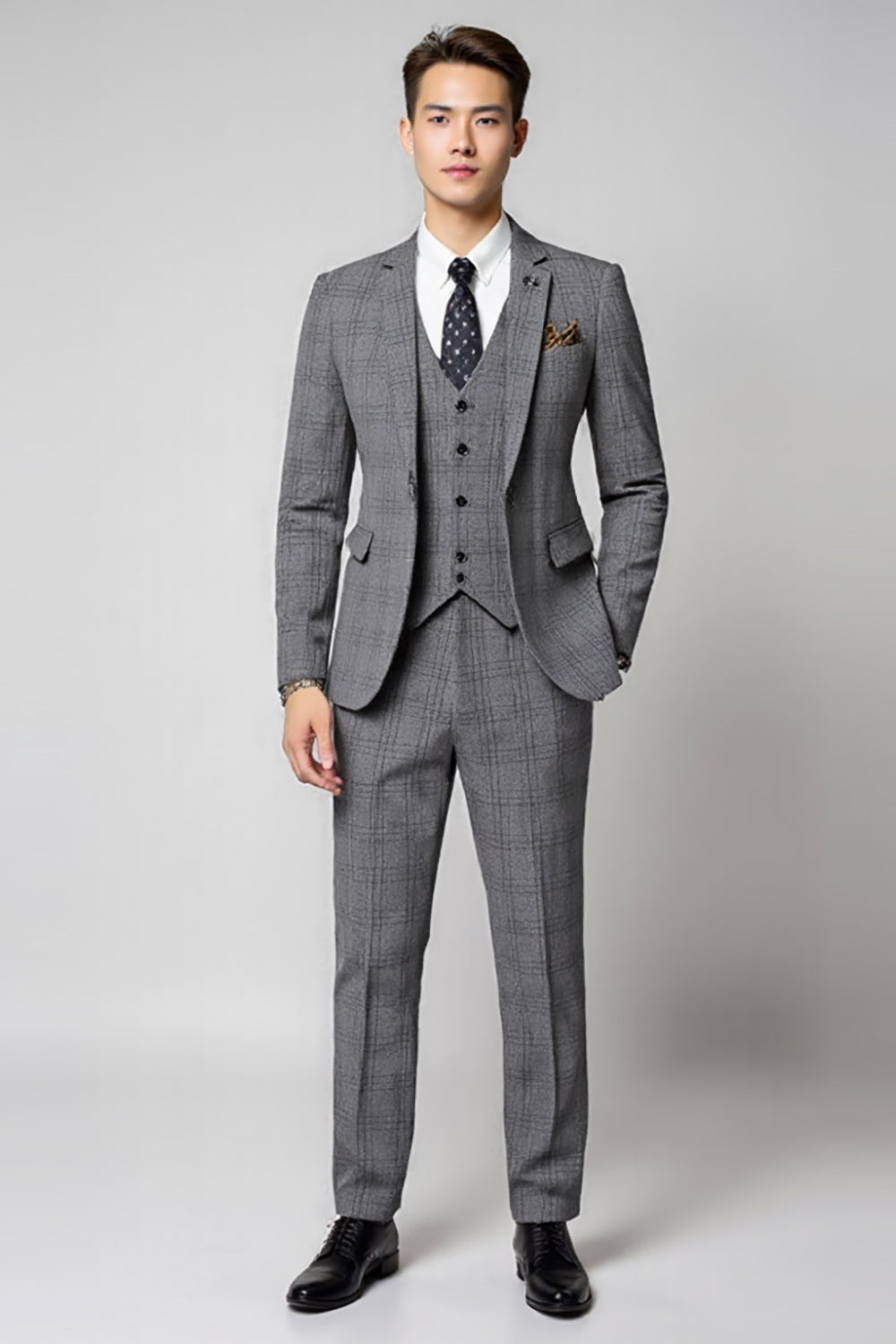 Grey Plaid Notched Lapel 3 Pieces Men's Formal Suits