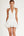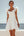 White Satin Short Keyhole High Neck Graduation Dress with Ruffles