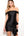 Black Satin Spaghetti Straps Mini Tight Cocktail Dress with Ruffles