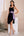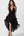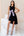 Black Satin Square Neck Asymmetrical Graduation Dress with Bow