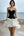 White and Black Satin A Line Mini Graduation Dress with Bow