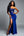 Blue A Line Strapless Tiered Long Beaded Prom Dress with Slit