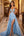Glitter Sky Blue V-Neck Sweep Train Satin Prom Dress with Slit