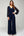 Navy V-Neck A Line Satin Maxi Formal Dress with Long Sleeves