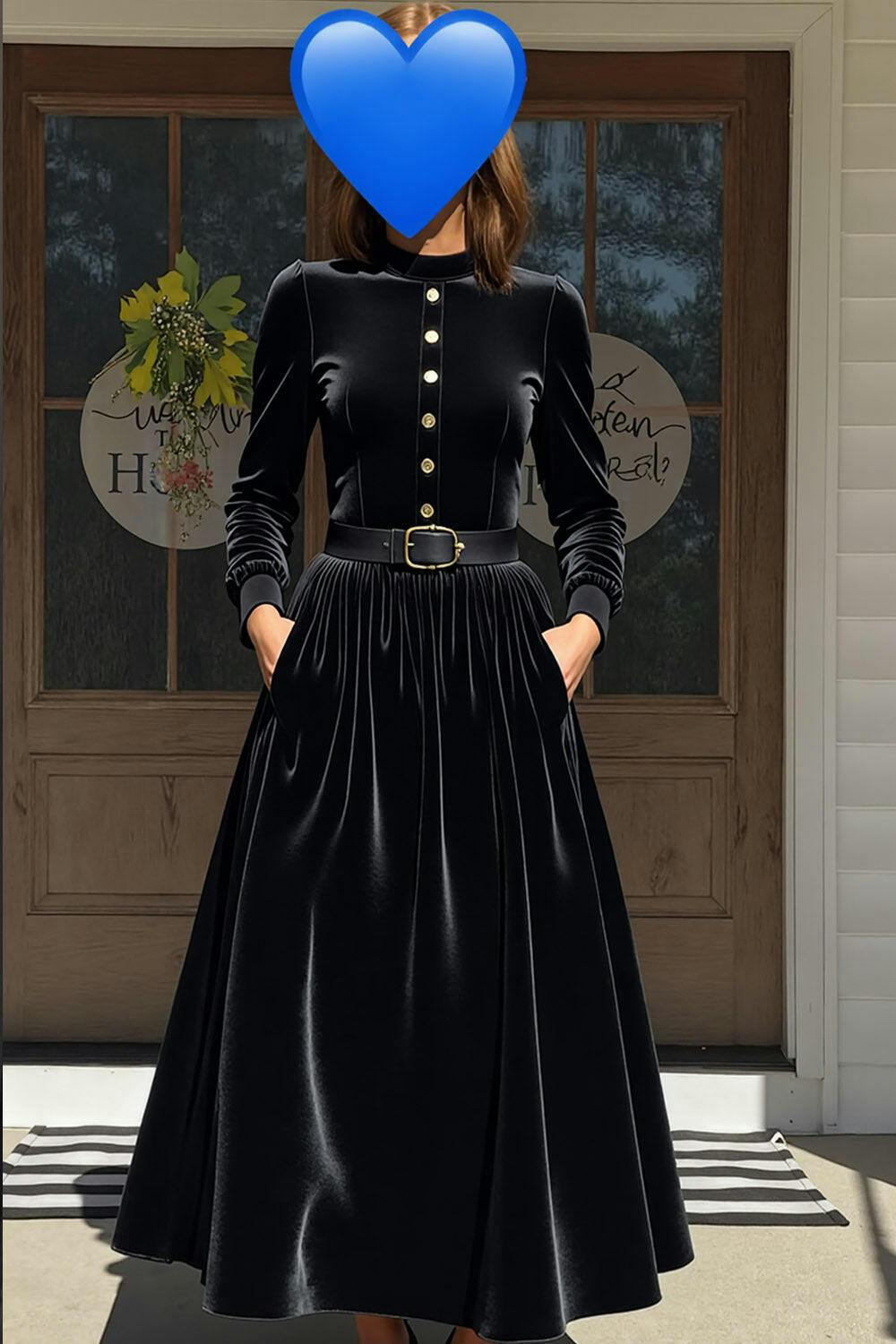 This sophisticated A-line dress in rich dark green velvet features a flattering waist-defining belt and a graceful floor-length silhouette. The luxurious fabric drapes beautifully, creating a timeless look perfect for holiday parties and festive gatherings. With its classic yet contemporary design, this dress ensures you celebrate the season in understated elegance and style.