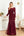 Burgundy A Line Round Neck Long Sleeves Chiffon Wedding Party Dress