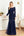 Navy Long Sleeves V Neck A Line Plus Size Wedding Guest Dress