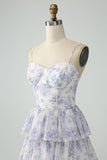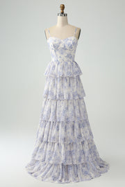 Adjustable Spaghetti Straps Corset Ruffles Floral Print A-Line Maxi Prom Dress