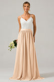 Cabernet A-Line Spaghetti Straps Pleated Long Bridesmaid Dress With Lace