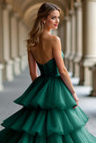 Dark Green Strapless Tiered Sweetheart A Line Long Prom Dress