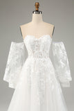 Detachable Long Sleeves Embroidery A-Line Sweep Train Wedding Dress