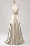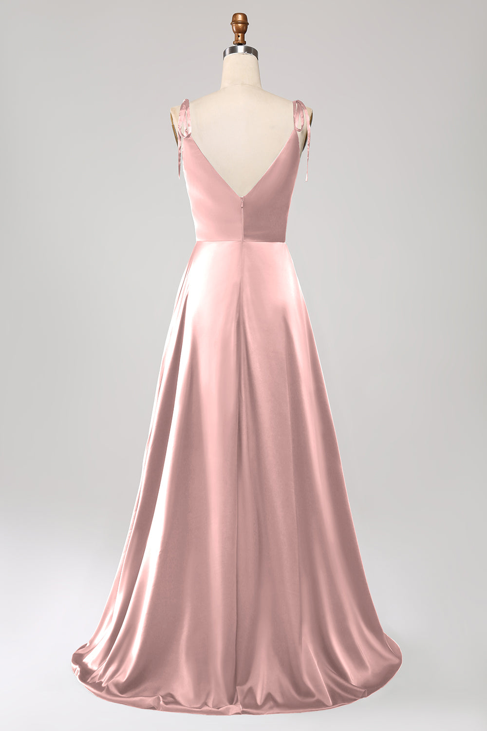 Dusty Rose A-Line Spaghetti Straps Satin Long Prom Dress With Slit