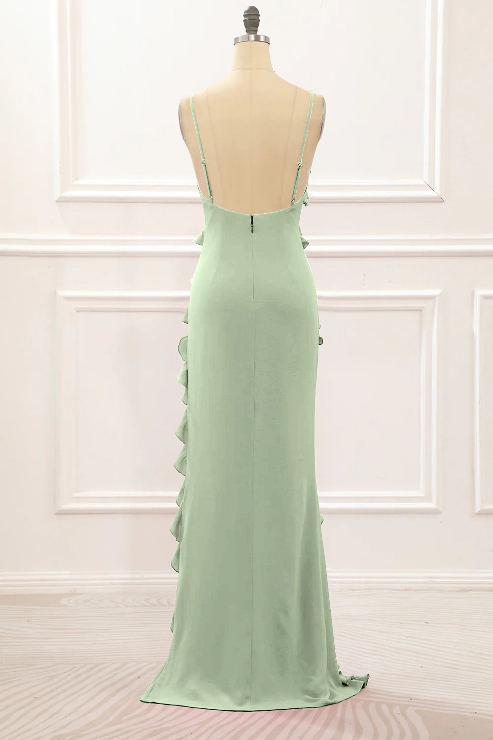 Dusty Rose Sheath Spaghetti Straps Long Bridesmaid Dress with Ruffles