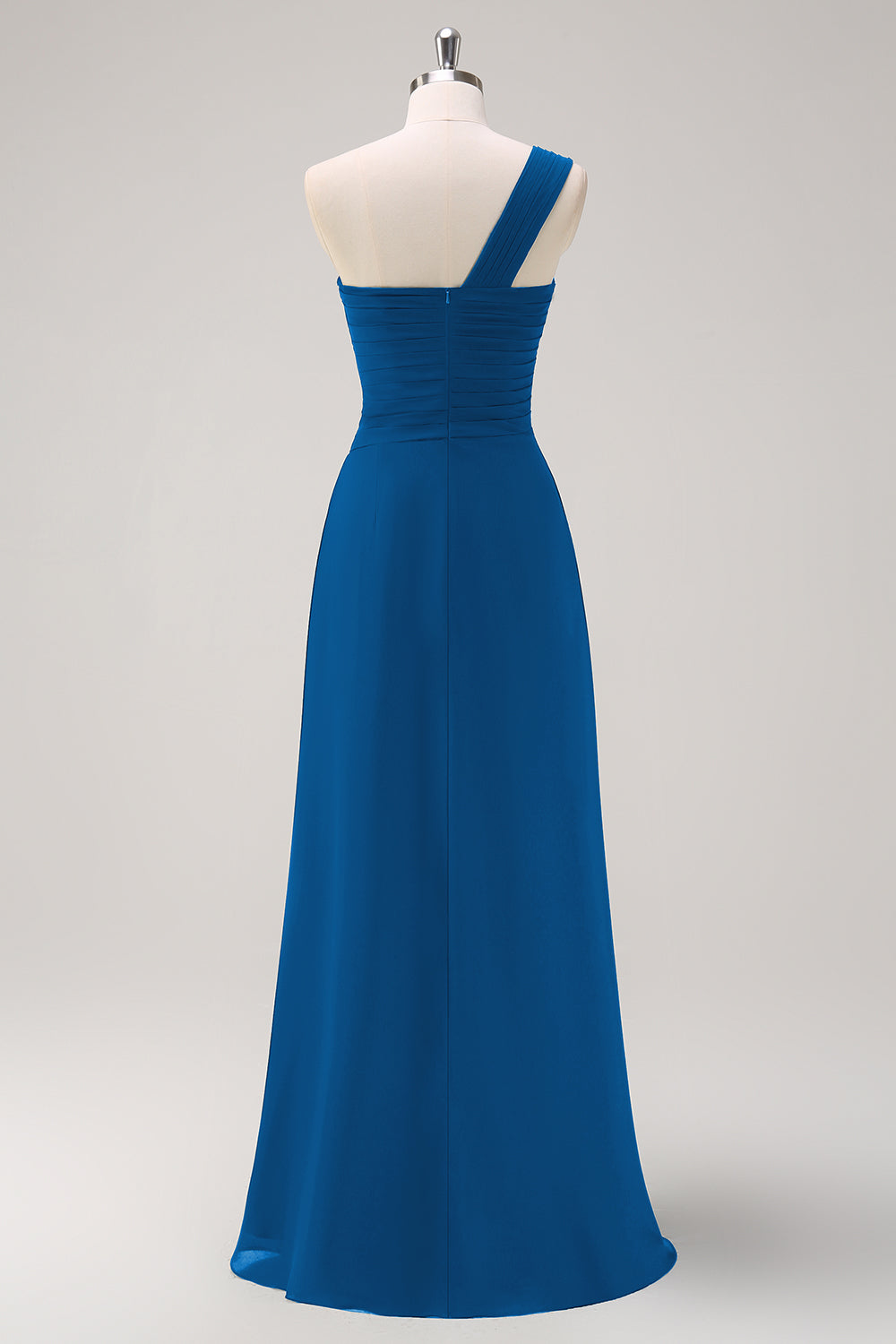 Eucalyptus One Shoulder A-Line Long Bridesmaid Dress with Slit