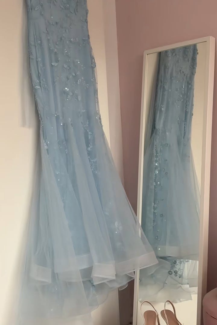 Light Blue Sparkly Beaded Mermaid Long Prom Dress