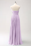 Lilac A-Line Corset Pleated Bridesmaid Dress