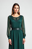 Pine Round Neck Embroideried Maxi Mother of the Bride Dress