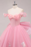 Princess Ball Gown Corset Off the Shoulder Appliqued Quinceañera Dress