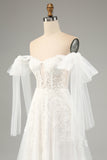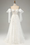 Princess Embroidery Lace Up Wedding Dress with Convertible Sleeves