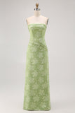 Sage Green Sheath Strapless Maxi Floral Wedding Guest Dress with Slit