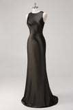 Simple Dark Grey Sheath Jewel Neck Maxi Formal Dress