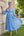 Blue A Line V-Neck Floral Long Bridesmaid Dress with Ruffles