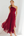Red Pink Patchwork Chiffon A Line V-Neck Long Wedding Guest Dress with Sleeves
