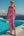 Hot Pink Chiffon Pleated A Line Maxi Wedding Guest Dress with Sleeves