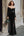 Black Cap Sleeves Ruched Maxi Mother of the Bride Dress with Slit