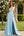 Sky Blue A Line V Neck Satin Cut-Out Long Prom Dress with Slit