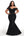 Black Mermaid Ruched Plus Size Maxi Prom Dress with Appliques