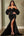 Dark Green A Line Puff Sleeves Tiered Long Prom Dress with Slit