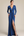 Blue Ruched Deep V-Neck Long Sleeves Formal Dress with Slit