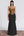 Glitter Halter Neck Long High Waist Black Tie Dress with Keyhole