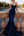 Dark Blue Satin V-Neck A-Line Long Formal Dress with Sleeves