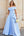 Sky Blue Deep V-Neck A Line Tea Length Wedding Guest Dress with Appliques