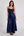 Navy V-Neck Ruched Sheath Satin Maxi Formal Dress with Slit