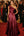 Burgundy V-Neck A Line Maxi Formal Dress with Long Sleeves